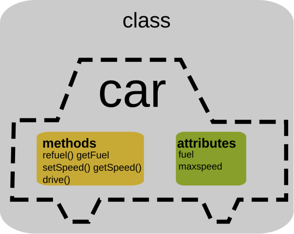 Además de las variables de instancia hay variables de clase, las cuales se aplican a la clase y a todas sus instancias. Por ejemplo, el número de ruedas de un automóvil es el mismo cuatro, para todos los automóviles.